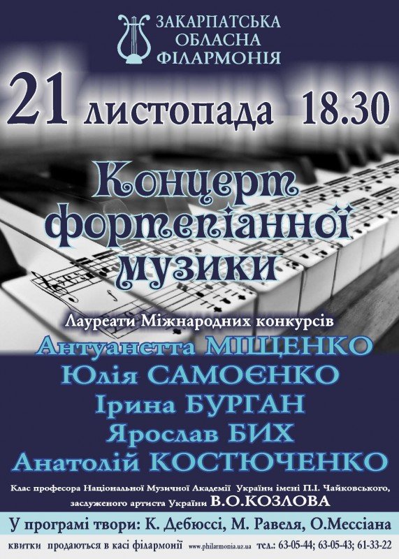 У програмі твори: К. Дебюссі, М. Равеля, О. Мессіана