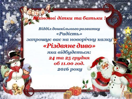• Новорічна казка для вихованців школи «РАДІСТЬ»