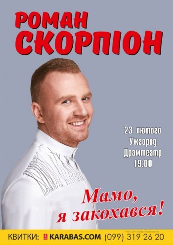 Роман Скорпіон з шоу- програмою «Мамо, я закохався» виступить в Ужгороді 23 лютого. Початок о 19-й годині.