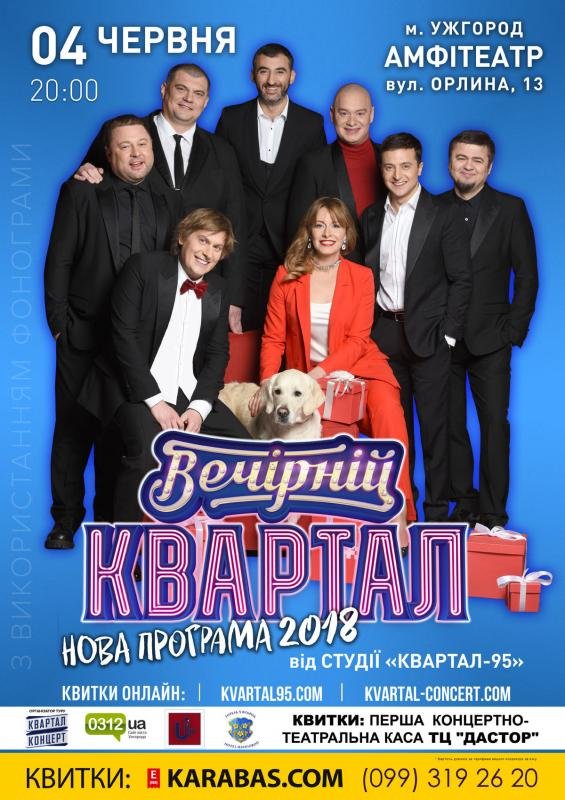 В новом году новой программой Студия «Квартал 95» радует своих зрителей. После триумфальных гастролей в Америке и Австралии главные комики страны готовы смешить украинцев. Владимир Зеленский, Евгений Кошевой, Юрий Крапов и все любимые «кварталовцы» скоро в твоем городе. Новые образы, свежие шутки, актуальные пародии, - все это в одном неповторимом концерте.