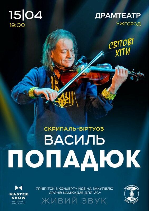 Неймовірне віртуозне музичне виконання Василя Попадюка подарують найяскравіші емоції, заряд енергії, магічне звучання скрипки й грандіозну атмосферу від всесвітньо відомого музиканта.