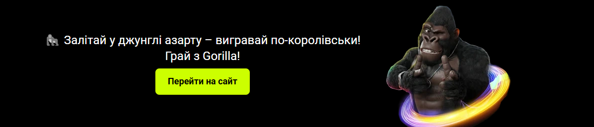 Горила – популярне казино онлайн з фантастичним вибором популярних ігор на будь-який смак. Грати в казино на гривні можна після реєстрації. Демо доступне без надання особистих даних. Офіційна ліцензія, надана казино Gorilla Комісією з регулювання азартних ігор та лотерей, виступає гарантом чесної гри та прозорих виплат.