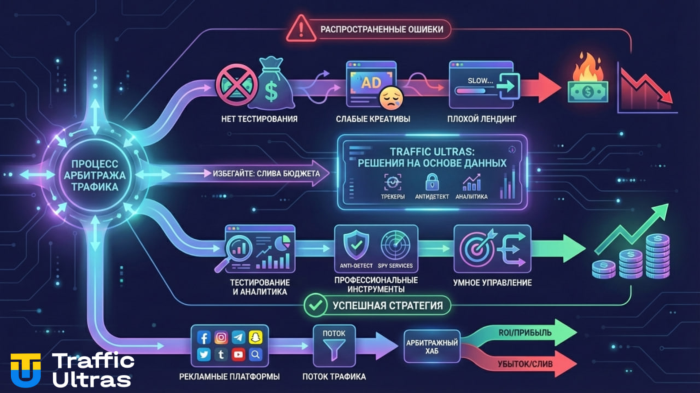 Чтобы не слить бюджет в первую же неделю, стоит разобрать типичные арбитраж трафика ошибки: