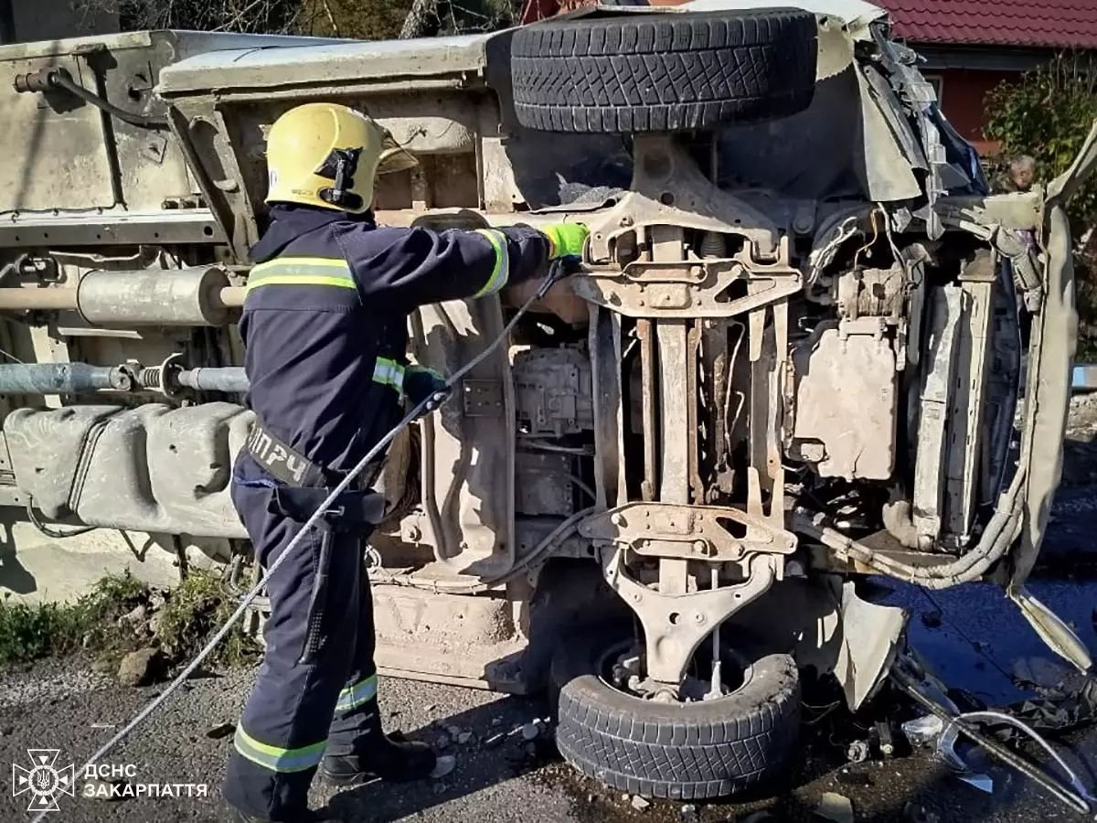 На Рахівщині автомобіль врізався в електроопору і перекинувся