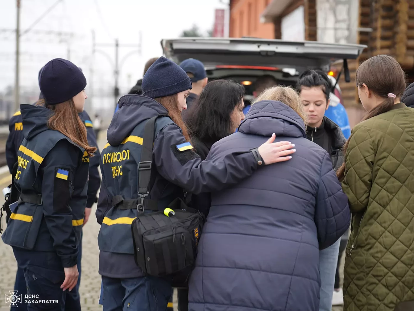 Серед них п’ятеро діток та їхні пухнасті улюбленці, котики Марфа і Льова. На пероні евакуйованих зустріли рятувальники та психологи ДСНС, які підтримали людей теплими словами й турботою. Адже їм потрібен не лише дах над головою, а й відчуття безпеки та емоційна підтримка.