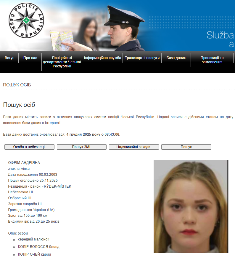 22-річна Офрім Андріяна з Рахівського району, яка перебувала на заробітках у чеському місті Фрідик-Місте, зникла 21.11.2025.