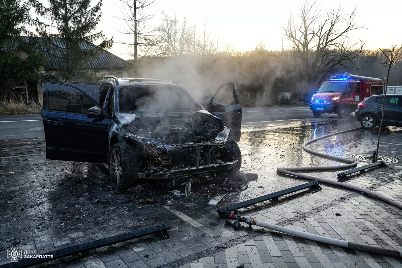 Він зупинився, аби перевірити технічний стан транспортного засобу, однак відкрити капот уже не зміг. Інші автовласники, які побачили це одразу повідомили рятувальників.