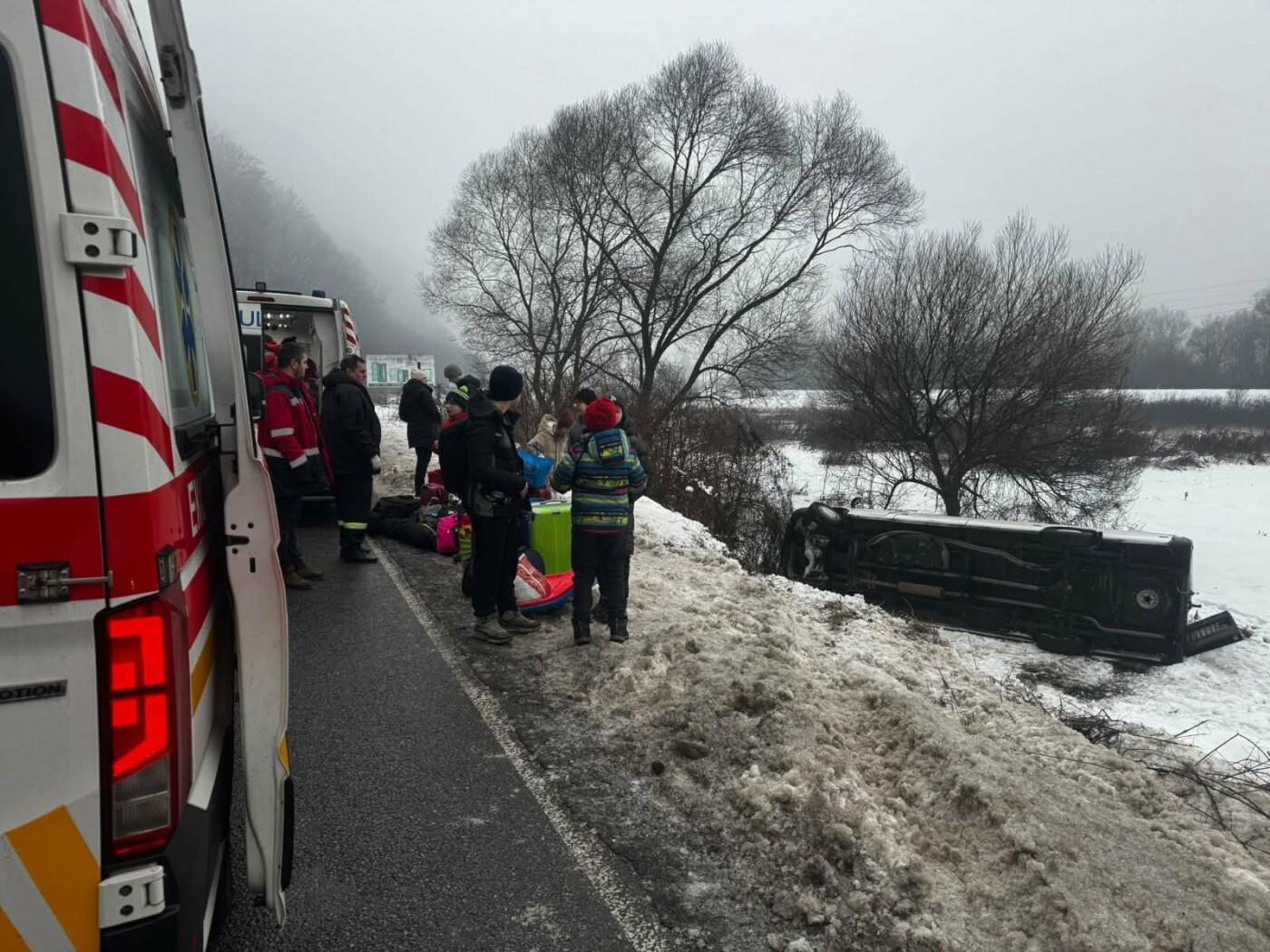 ДТП сталася сьогодні о 8:36 між Перечином та Зарічово Ужгородського району - через ожеледь мікроавтобус Mercedes Sprinter, який віз дітей на відпочинок з Києва до Карпат, раптово з’їхав з траси й перекинувся на бік.